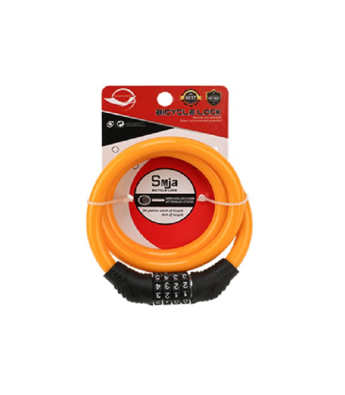 Замок велосипедный тросовый кодовый Smja-95, длина 10*950мм, АBS/стальная проволока, Orange