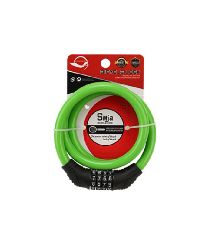Замок велосипедный тросовый кодовый Smja-95, длина 10*950мм, АBS/стальная проволока, Green