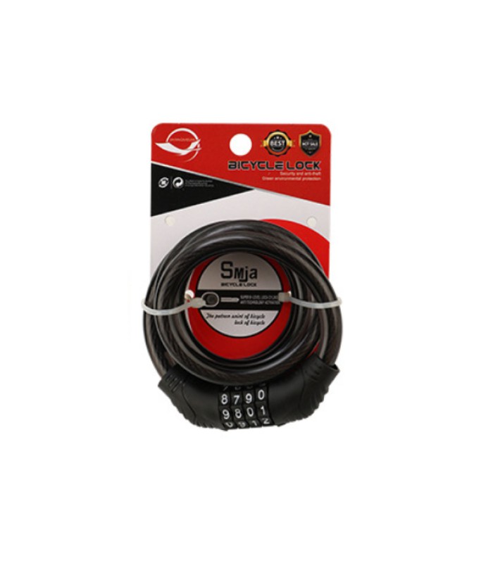 Замок велосипедный тросовый кодовый Smja-95, длина 10*950мм, АBS/стальная проволока, Black