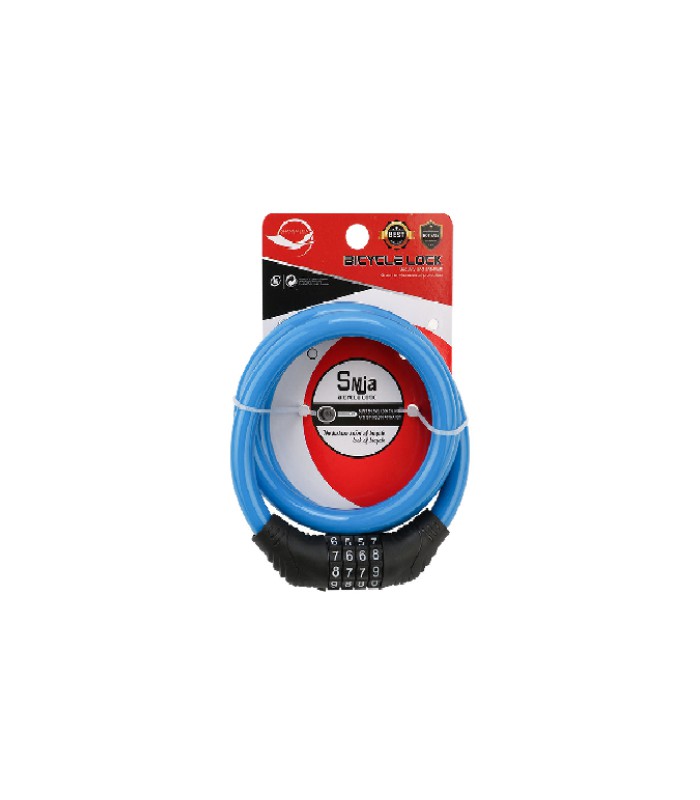 Замок велосипедный тросовый кодовый Smja-95, длина 10*950мм, АBS/стальная проволока, Blue