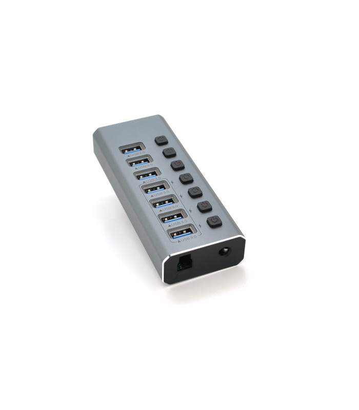 Хаб USB 3.0, 4 порта USB 3.0 + 3 порта QC3.0, с переключателями на каждый порт, DC12V2A, черный, BOX