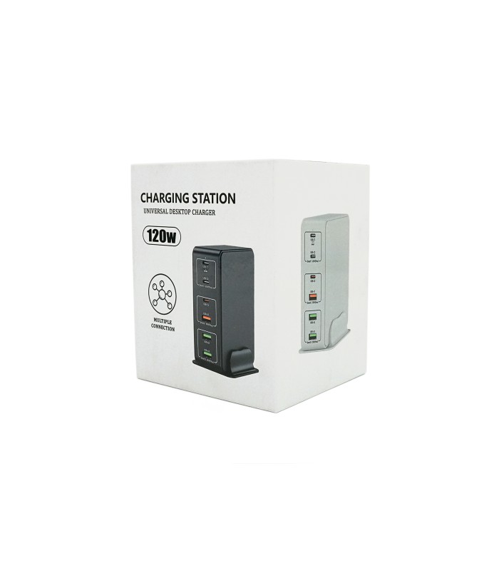 Зарядная станция V-818H представляет собой многофункциональное устройство, предназначенное для зарядки различных гаджетов, включая смартфоны, планшеты и компьютеры. С шестью портами для подключения (3USB и 3Type-C) она способна одновременно заряжать несколько устройств, обеспечивая быструю и эффективную зарядку благодаря высокой мощности в 120W. Классический черный дизайн станции будет гармонично смотреться в любом интерьере, а прочные и качественные материалы гарантируют долгий срок службы.