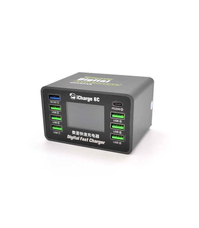 Зарядная станция MECHANIC iCharge 8C представляет собой компактное и высокоэффективное решение для одновременного питания нескольких мобильных устройств. Устройство оснащено 6 портами USB-A и 2 интеллектуальными портами с поддержкой современных технологий быстрой зарядки, что делает его идеальным выбором для дома, офиса или путешествий. Встроенный цифровой дисплей позволяет контролировать процесс зарядки в режиме реального времени.