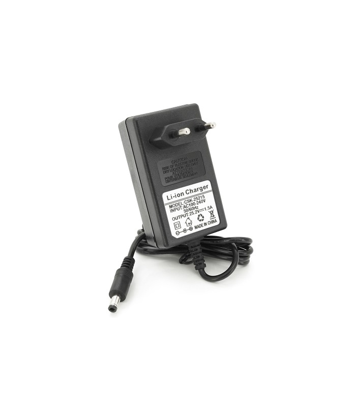 Данное зарядное устройство предназначено для зарядки аккумуляторов Li-ion типа 25,2V, 6S с номинальной силой тока 1,5A. Устройство оснащено штекером 5.5-2.5 и имеет встроенную индикацию состояния зарядки.