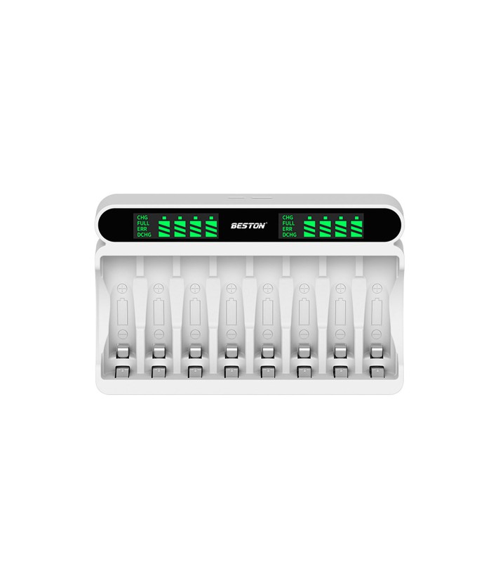 Зарядное устройство универсальное BESTON предназначено для зарядки аккумуляторов Li-ion, Ni-MH и Ni-Cd AA (R6), AAА (R03).
