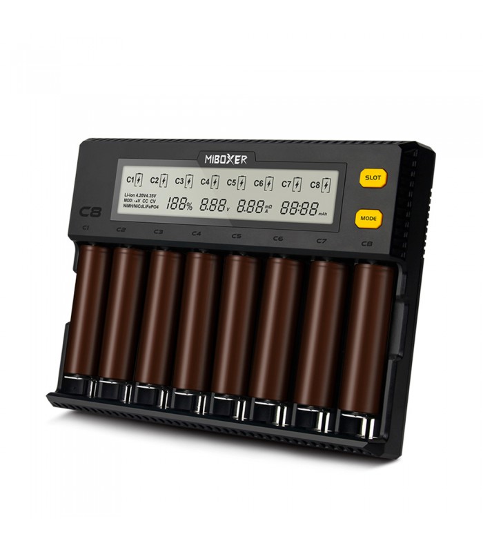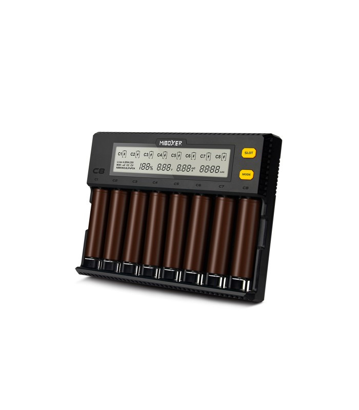 Зарядное устройство MIBOXER-C8 предназначено для одновременной зарядки до восьми аккумуляторов различных типов: Li-ion, Ni-MH и Ni-Cd AA (R6), ААA (R03), AAAA, С (R14). Устройство оснащено светодиодным индикатором, который показывает процесс зарядки каждого отдельного канала.