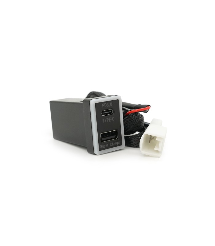 АЗУ врезное 60W-D01T03-С, PD+QC, Type-C: 30W, USB: 30W, LED подсветка, комплект проводов с разъемами, 33x22х58mm, Black