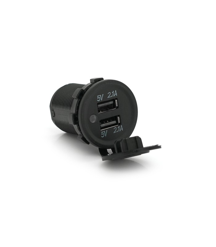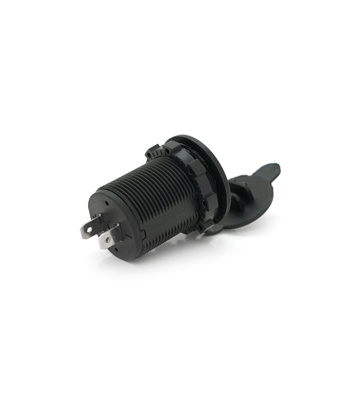 Гнездо автомобильного прикуривателя врезное 5V 2.1A с индикатором и крышкой. Изготовлено из пластикового корпуса.
