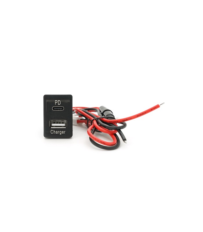 АЗУ врезное 38W-L01T03-S, PD+QC, Type-C: 20W, USB: 18W, комплект проводов под пайку, 33x22х58mm, Black