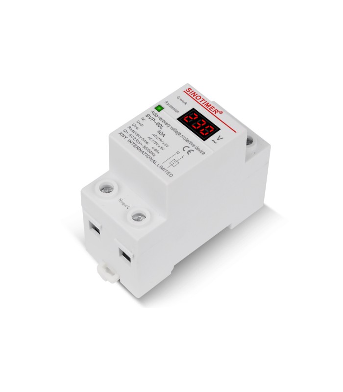 Реле напряжения SVP-60 предназначено для защиты однофазных нагрузок от недопустимых колебаний напряжения и обрыва нейтрали. Устройство осуществляет непрерывный контроль сетевого напряжения и отключает нагрузку при выходе параметров за установленные пределы. После нормализации напряжения, реле автоматически включает нагрузку с заданной пользователем задержкой. SVP-60 монтируется на стандартную DIN-рейку, что обеспечивает удобство и простоту установки.
