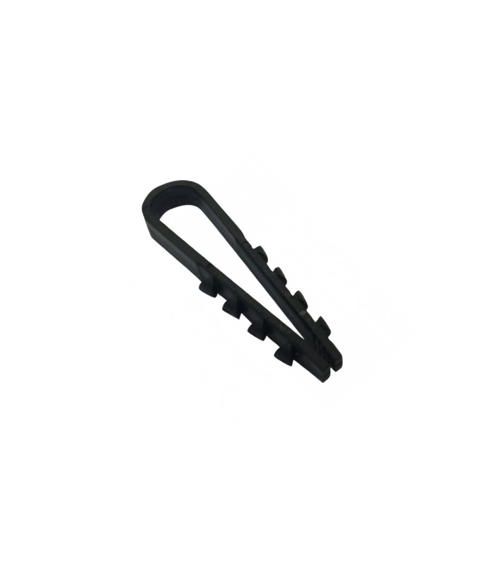 Это зажим для елочки диаметром 6 мм, предназначенный для крепления круглого кабеля. В упаковке содержится 100 штук зажимов, которые выполнены из черного нейлона.